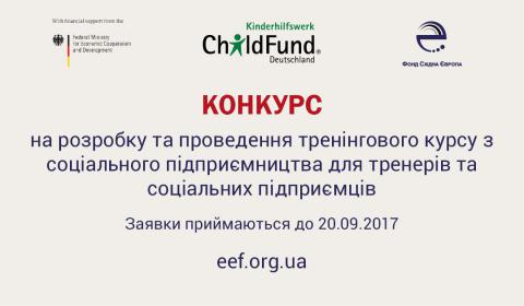 Фонд Східна Європа та ChildFund Deutschland оголошують конкурс з розробки та проведення тренінгових курсів з соціального підприємництва Дізнатися більше про Фонд Східна Європа та ChildFund Deutschland оголошують конкурс з розробки та проведення тренінгових курсів з соціального підприємництва ср, 08/23/2017 - 12:00
